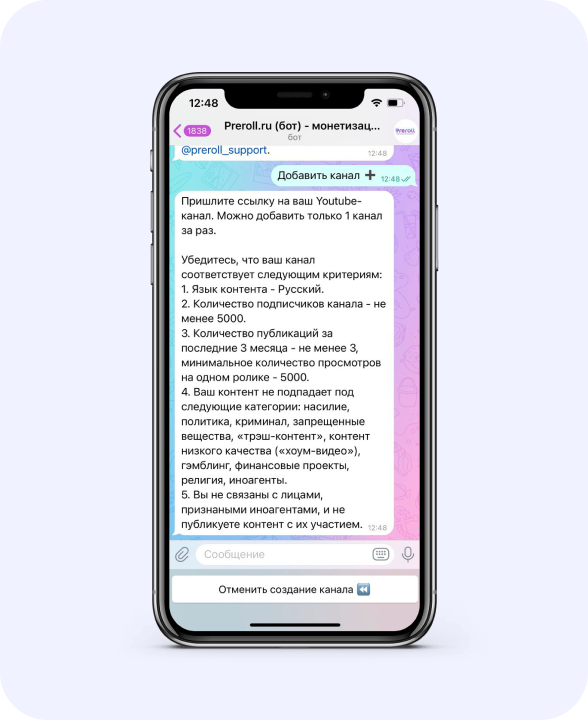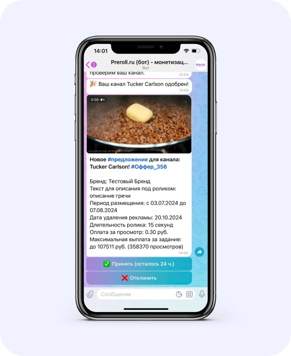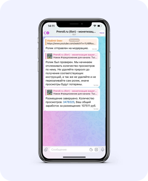 Встраивайте ролик в контент, публикуйте и присылайте боту ссылку